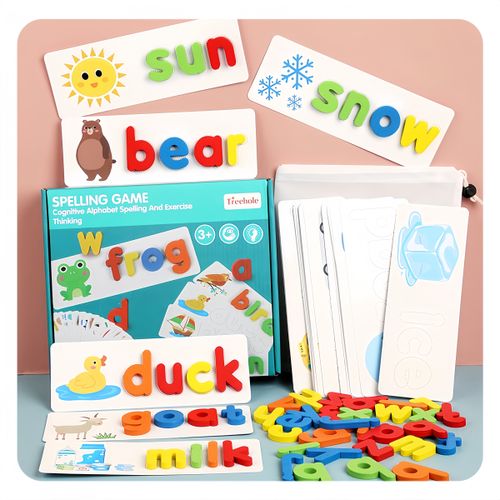 Montessori 3D Wooden Alphabet Puzzle Children's English Learning Toy Spelling and Writing Toy Alphabet Matching Game Word Spelling Activity