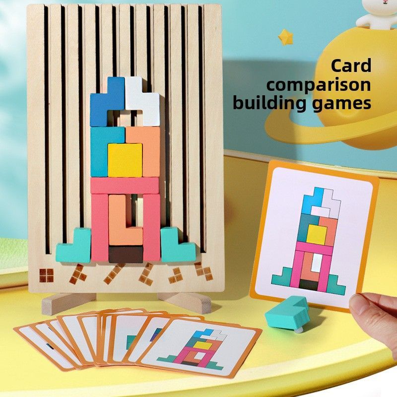 Tetris Wooden Building Blocks Baby 3D Cubic Puzzle Children's Educational Wooden Toy