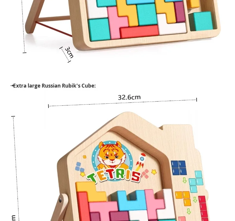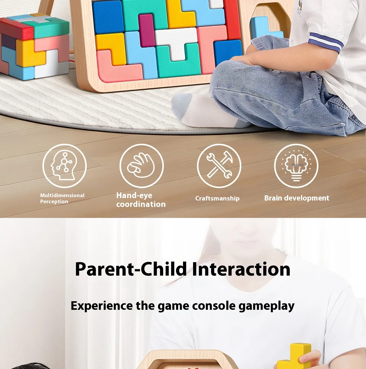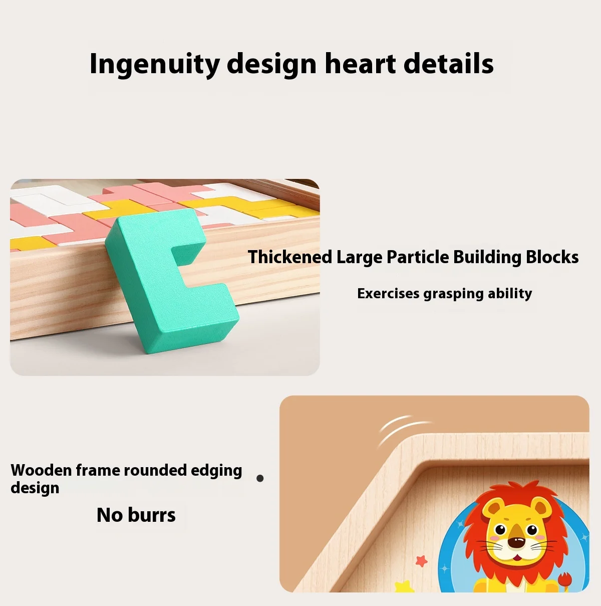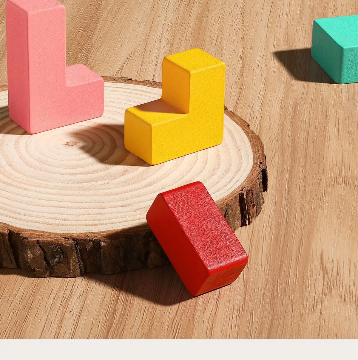 3D Russian Building Blocks Thinking Training Tangram Puzzle Toy Wooden Puzzle