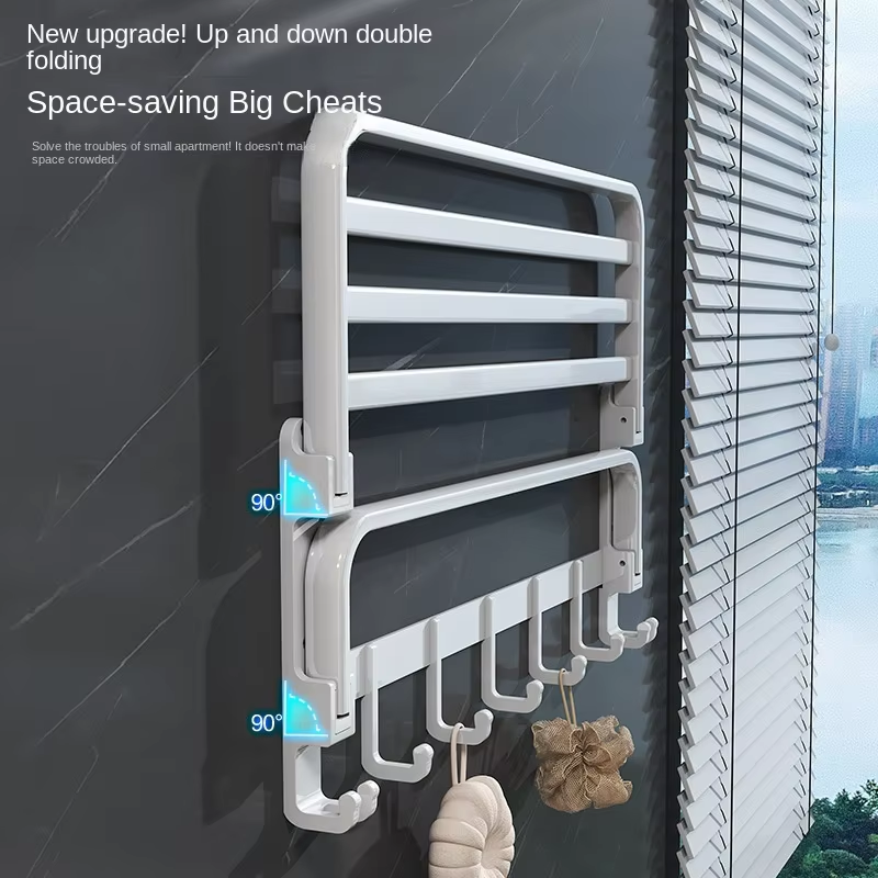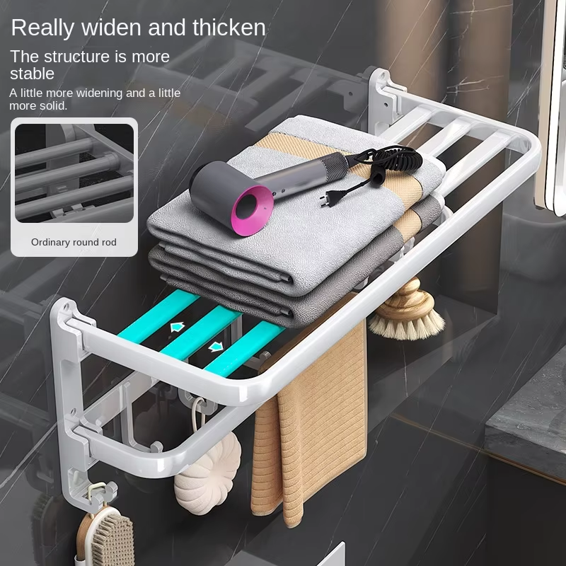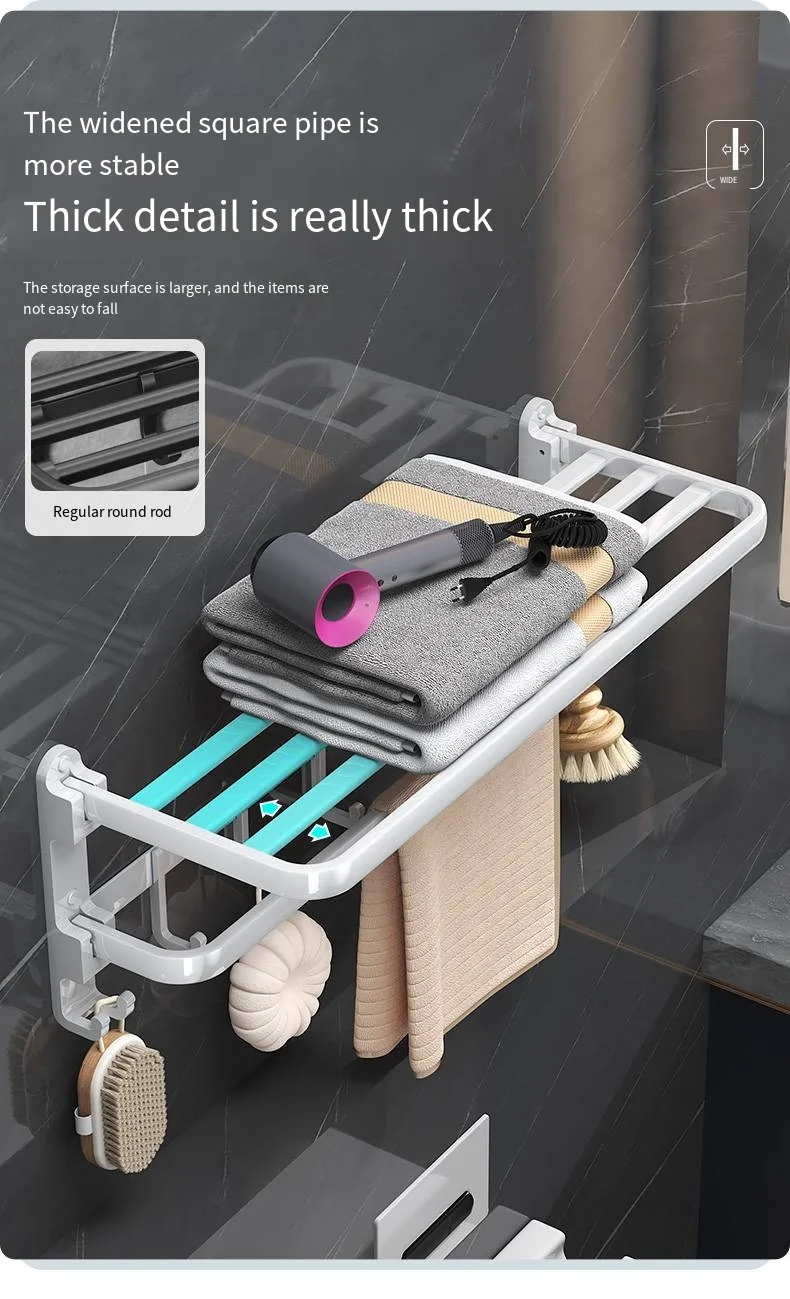 No-Drill Towel Rack Set: Wall-Mounted Foldable Bath Towel Rack Multifunctional Bathroom Storage Rack The Ultimate Bathroom Organization Solution!