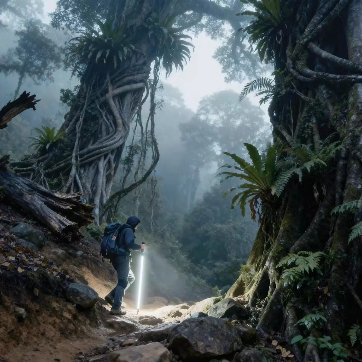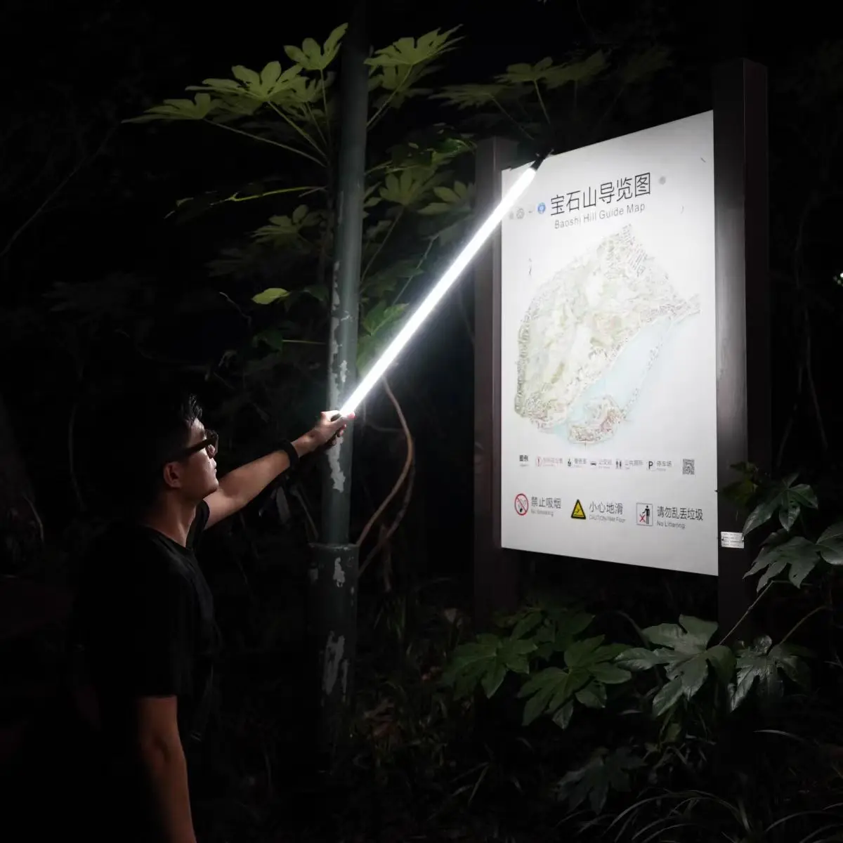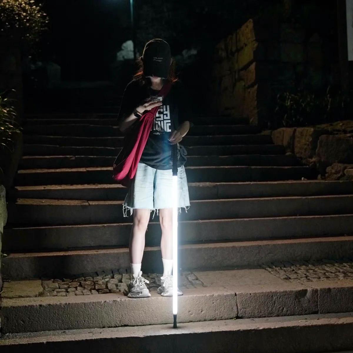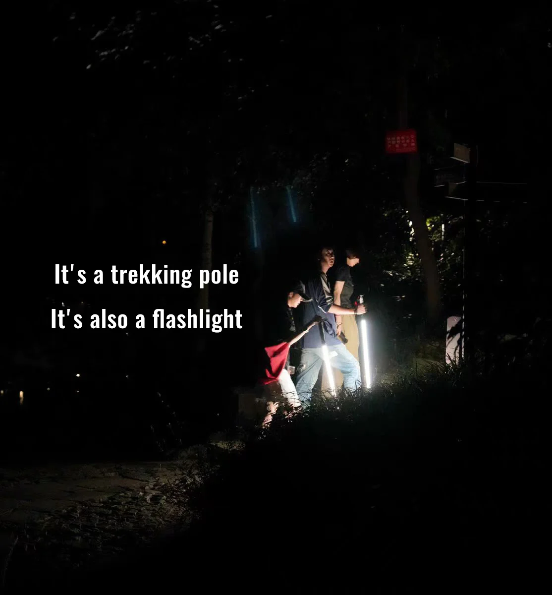 Professional night hiking equipment: ultra-lightweight trekking poles with lighting for convenient hiking.