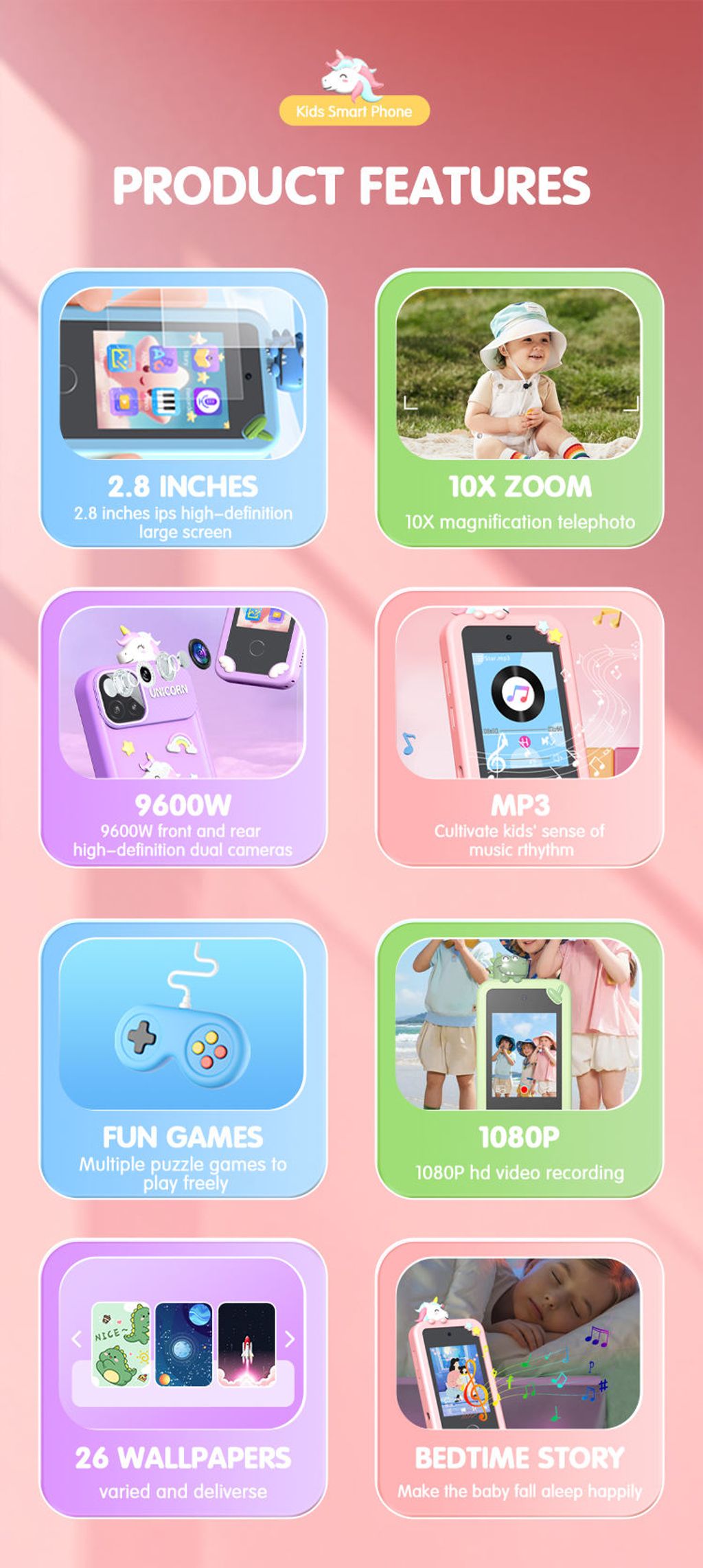 2025 Mini Smart Kids' Camera Phone Toy with Photo-Taking Learning Function 2.8-inch Touchscreen Parent-Controllable