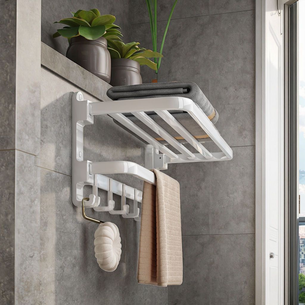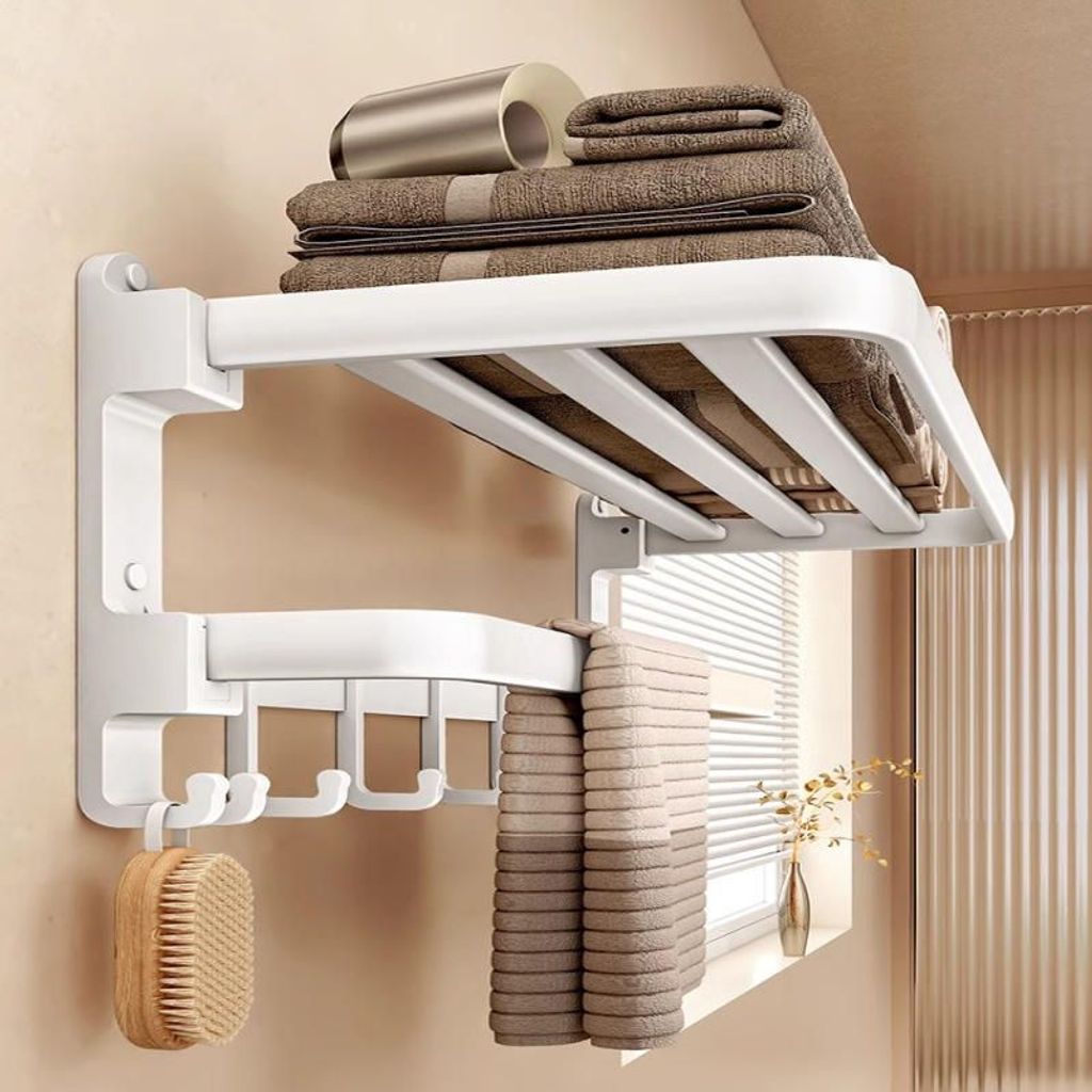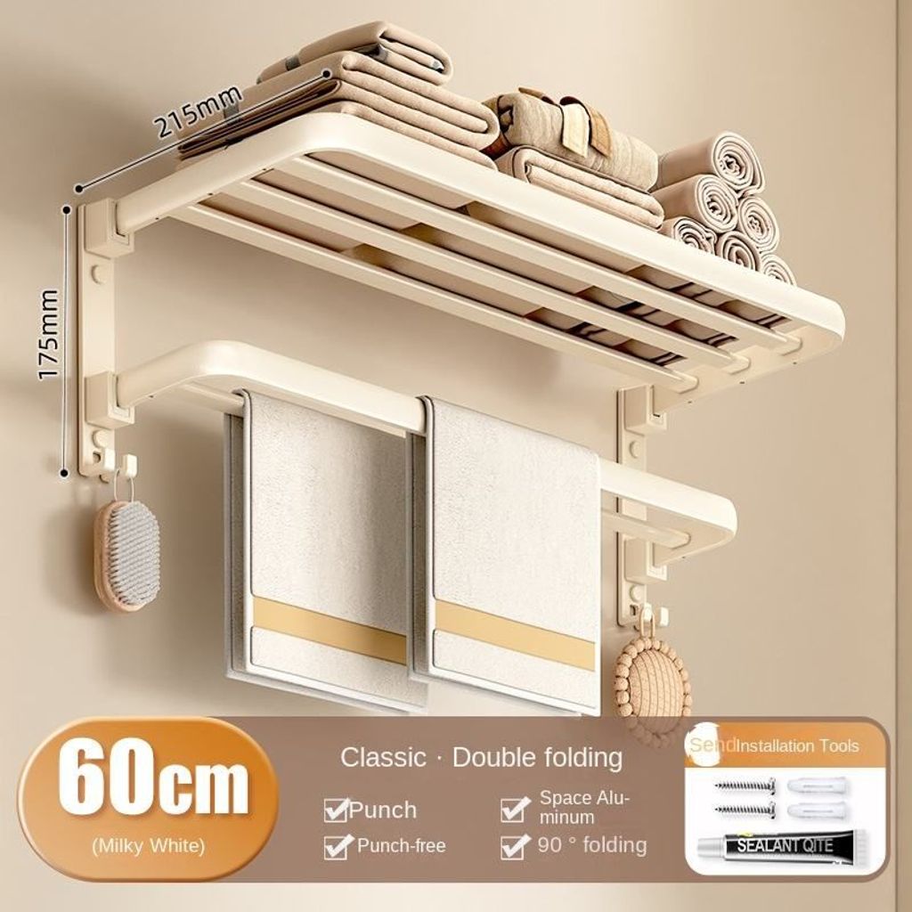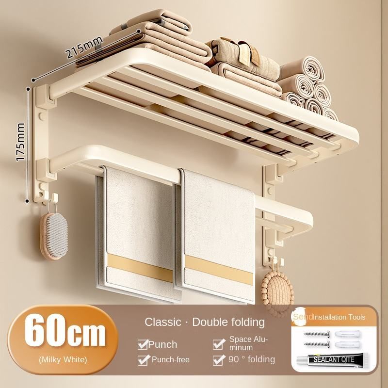 No-Drill Towel Rack Set: Wall-Mounted Foldable Bath Towel Rack Multifunctional Bathroom Storage Rack The Ultimate Bathroom Organization Solution!