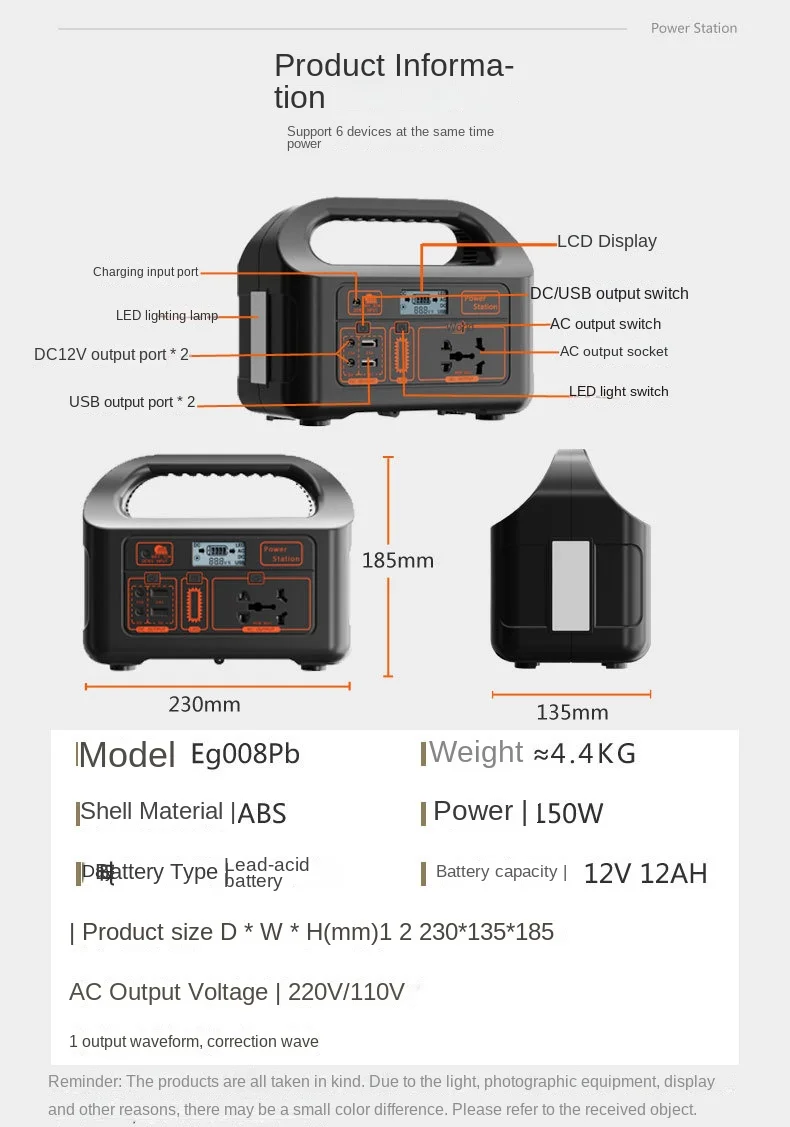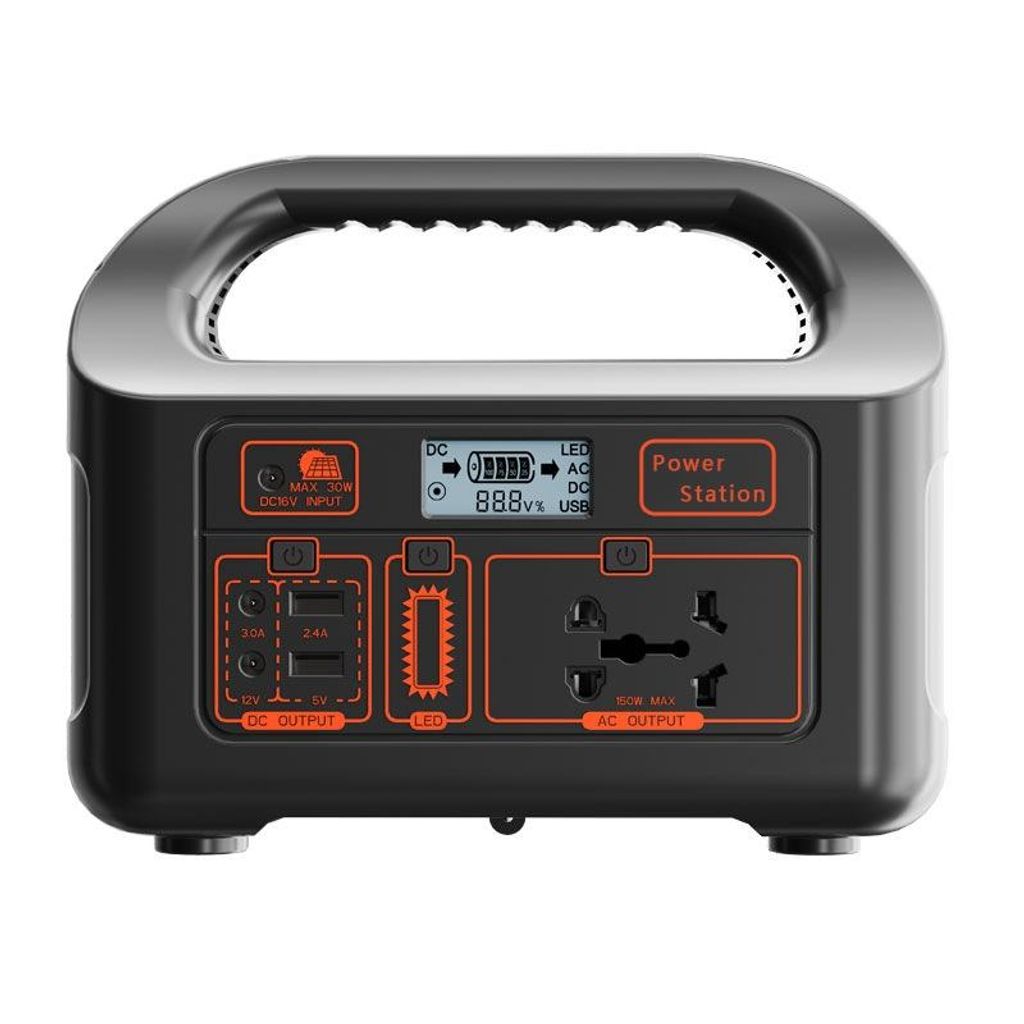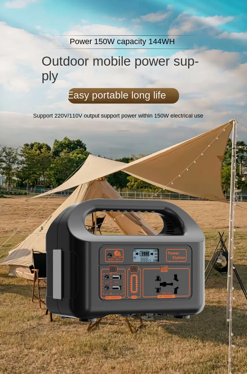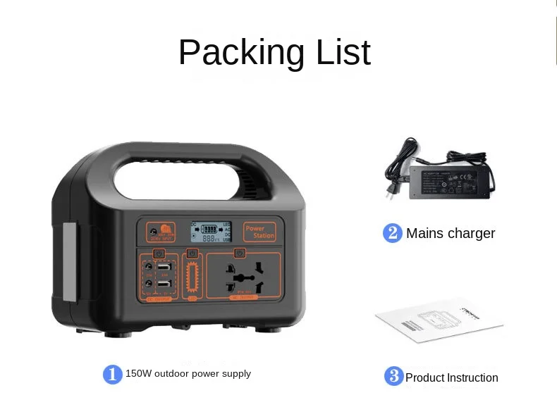 Portable 150W Power Station with Lithium-Ion Battery and Solar Panel, 220V Plug for Outdoor Wireless Charging